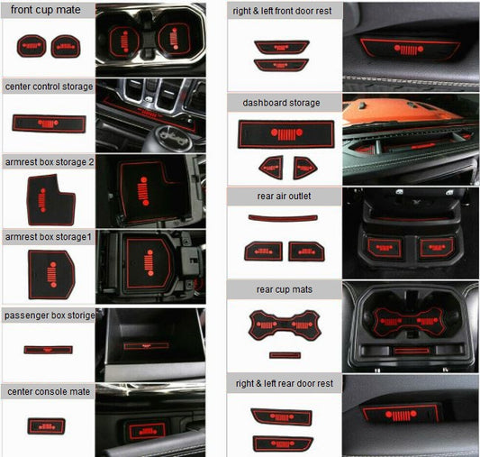 19 Pcs Cup Holder Mats Kit for Wrangler JL 2018-2025